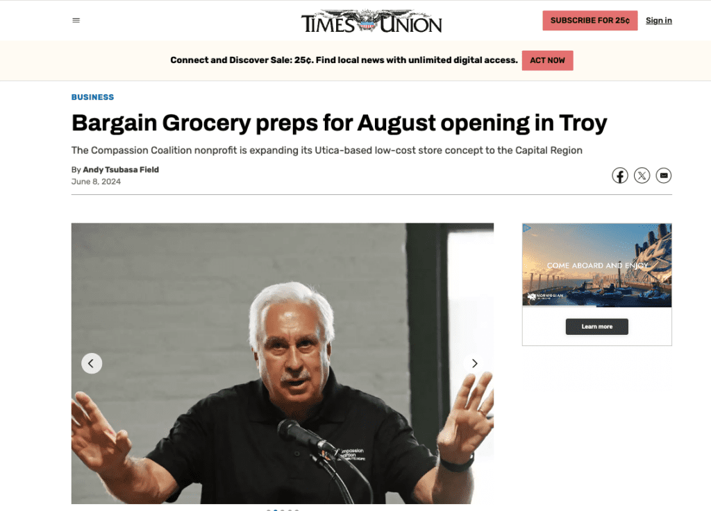Thank you to reporter Andy Tsubasa Field from the Times Union for reporting on our construction ribbon cutting. Below is a summary of the article: Compassion Coalition is opening a new Bargain Grocery store at 558 River St. in Troy’s North Central neighborhood by August, aiming to provide affordable food in an economically disadvantaged area. […]